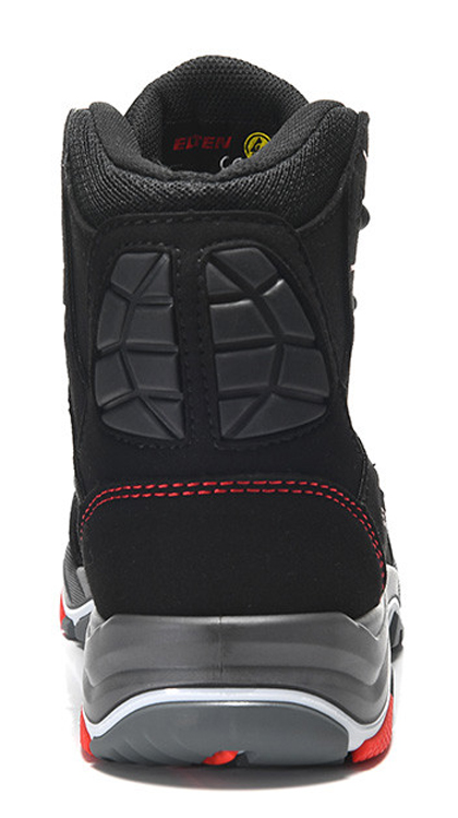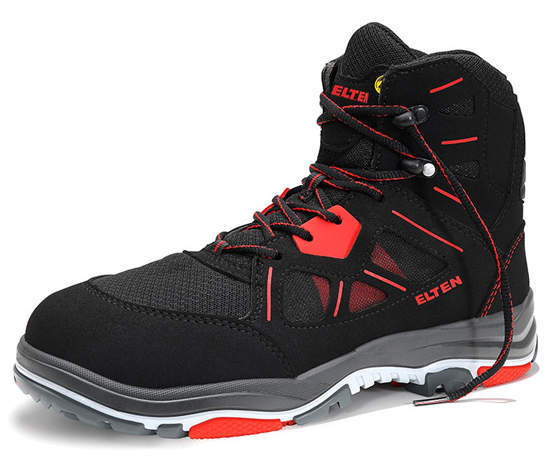 Ein robuster Sicherheitsschnürstiefel, der gleichzeitig atmungsaktiv ist? Kein Problem für den ANTHONY red Mid ESD S1 Typ 2. Denn dieser Stiefel punktet mit zahlreichen Sicherheitsfeatures wie Stahlkappe im Zehenschutzbereich, Achillessehnen-Protektor, semi-orthopädischer Einlegesohle, gepolsterter Lasche. Zugleich ist er sehr luftig, denn das Obermaterial besteht aus Mesh und Mikrofaser. Im Zusammenspiel mit dem atmungsaktiven Innenfutter kann die Luft hier gut zirkulieren, so dass schwitzige Füße verhindert werden. Der Durchtrittschutz fällt weg, was das Gewicht dieses Stiefels reduzieren hilft. Und die Zweischichtensohle ERGO-ACTIVE 2 aus TPU und PU ist sehr clever konzipiert: dank einer S-linienförmigen Anordnung der Profilblöcke erlaubt sie ein ergonomisches Abrollen des Fußes und ist dabei auch bemerkenswert rutschhemmend.
