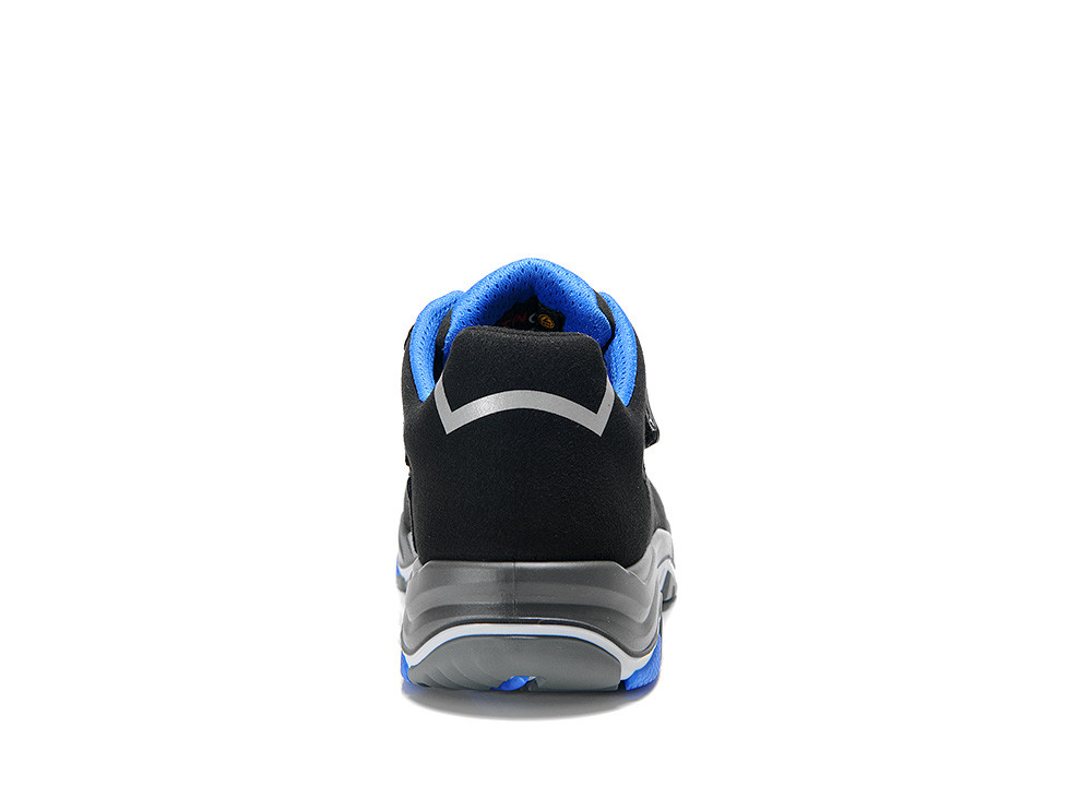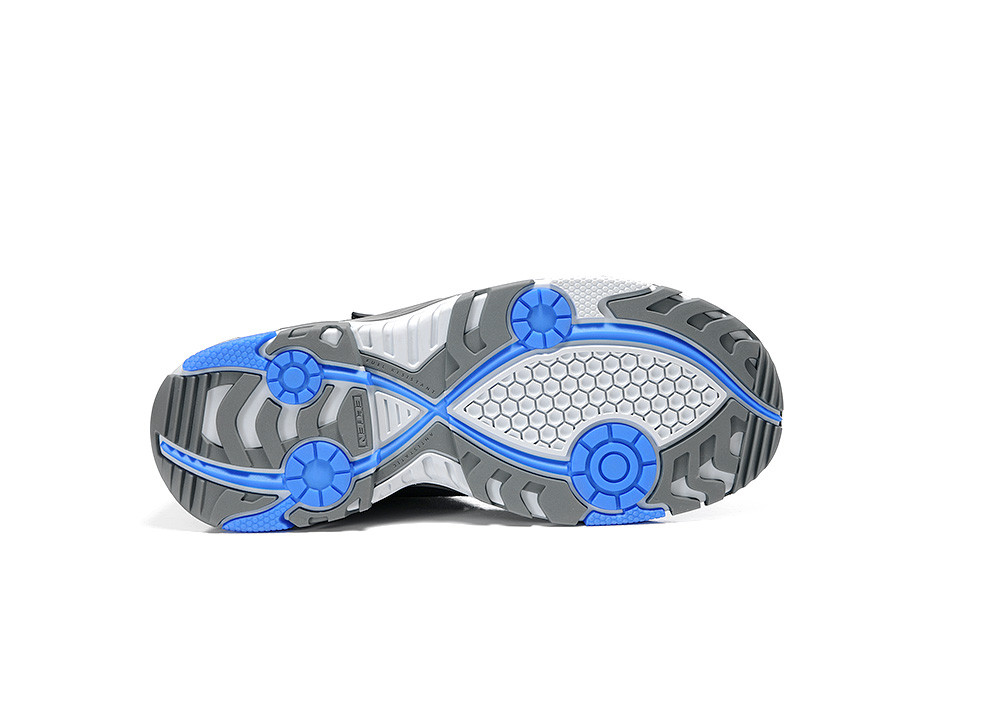 Eine Stahlkappe schützt die Zehen erfolgreich vor Gefahren, die Laufsohle unterstützt für guten Halt auf glatten Hallen- oder Industrieböden. Die Wabenstruktur sorgt für die nötige Rutschhemmung, ergonomische Drehpunkte erleichtern das Drehen auf der Stelle bei stehenden Tätigkeiten.