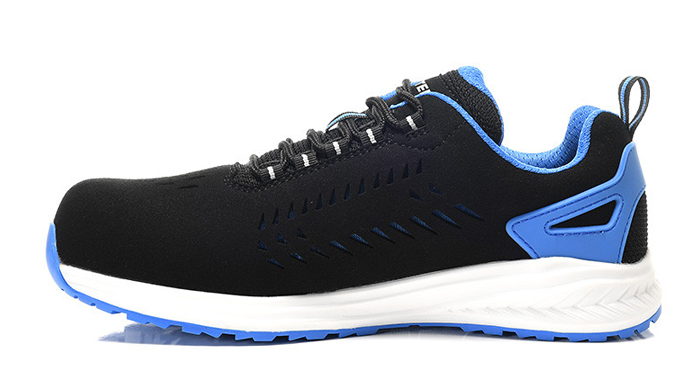 Ein äußerst geschmeidiger Vertreter unserer TRANSFOAMERS-Reihe, überzeugt der SHARKI blue Low ESD S1 durch und durch mit seinen sportiven Features. Leicht ist er. Und wendig, so wie das namensgebende Meerestier. Sein Obermaterial aus Mikrofaser ist strapazierfähig und flexibel, dadurch passt sich der Schuh wunderbar an den Fuß an und gibt den nötigen Halt. Wo bei einem Haifisch Kiemen sitzen, befinden sich beim Sharki kleine Schlitze, die dem Schuh einen charakteristischen Look verleihen. Außerdem unterstützen sie die Luftzirkulation. Zusammen mit dem atmungsaktiven Innenfutter ist so stets für ein optimales Klima im Schuh gesorgt. Die Zehenschutzkappe aus Kunststoff verleiht der Schuhspitze Kraft und Zähigkeit, da prallen schwere Objekte einfach ab. Dank der TRANSFOAMERS-Sohle, einer Kombination aus TPU, EVA und GUMMI, ist man flink und beweglich auf jedem Gelände, für hervorragende Rutschhemmung sorgt sie ebenfalls. Und auch wenn wir es schon erwähnt haben: die enorme Leichtigkeit dieses Schuhs ist wirklich ein Riesenplus, da fühlt sich jeder Schritt nochmal viel dynamischer an!