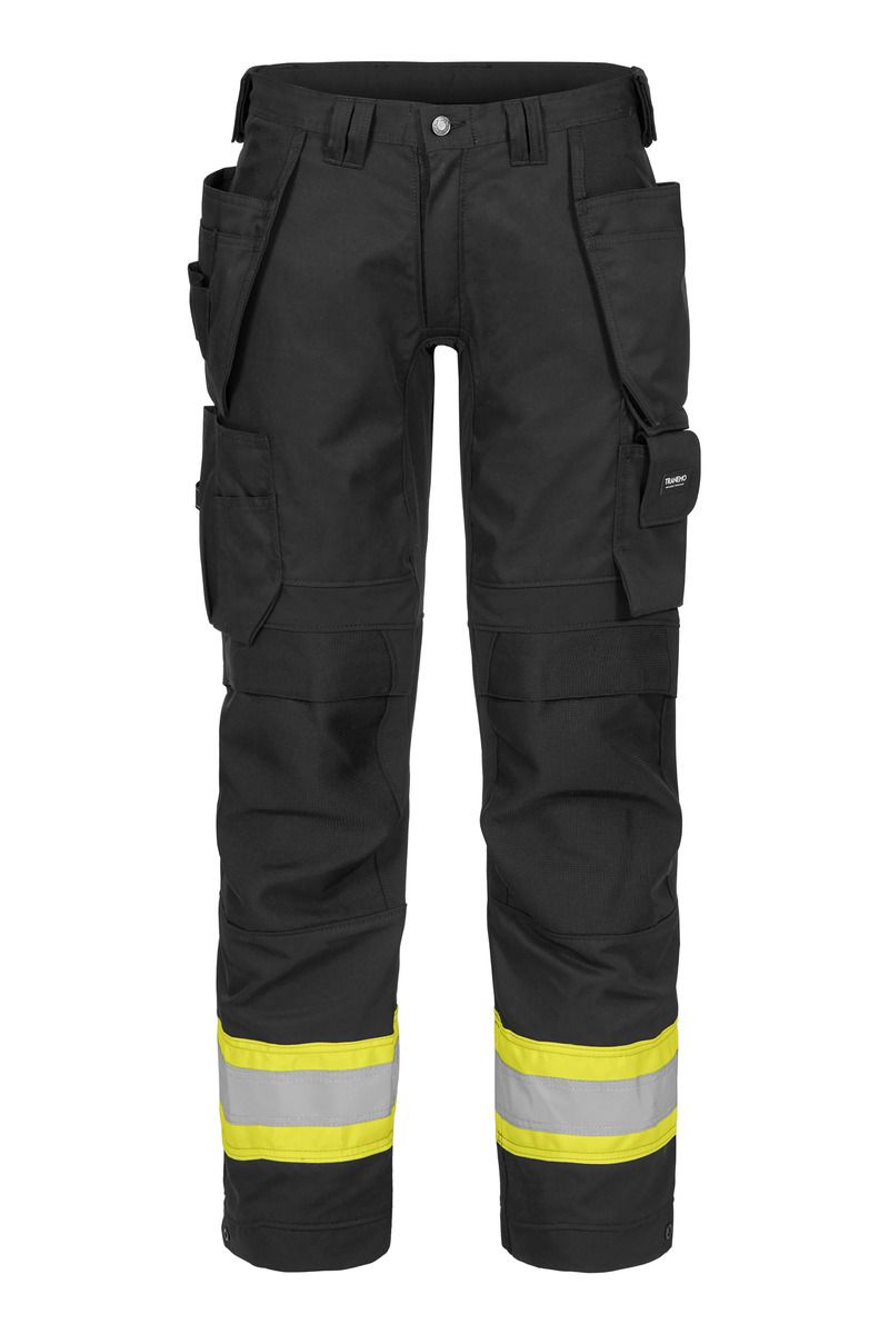 Handwerker-Bundhose mit 4-Wege-Stretchzonen für perfekte Passform, hohen Komfort und maximale Bewegungsfreiheit. Für erhöhte Sichtbarkeit. Mit verstärkten Nageltaschen und vielen Werkzeugtaschen für Handwerker geeignet, die eine hohe Funktionalität benötigen. Die Hose hat außenliegende, mit HTPA-Dobby verstärkte Kniepolstertaschen.