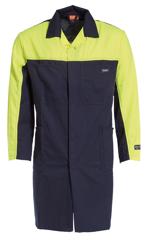 Metallfreier FR Kittel mit Warnschutzdetails für subjektive Sichtbarkeit.