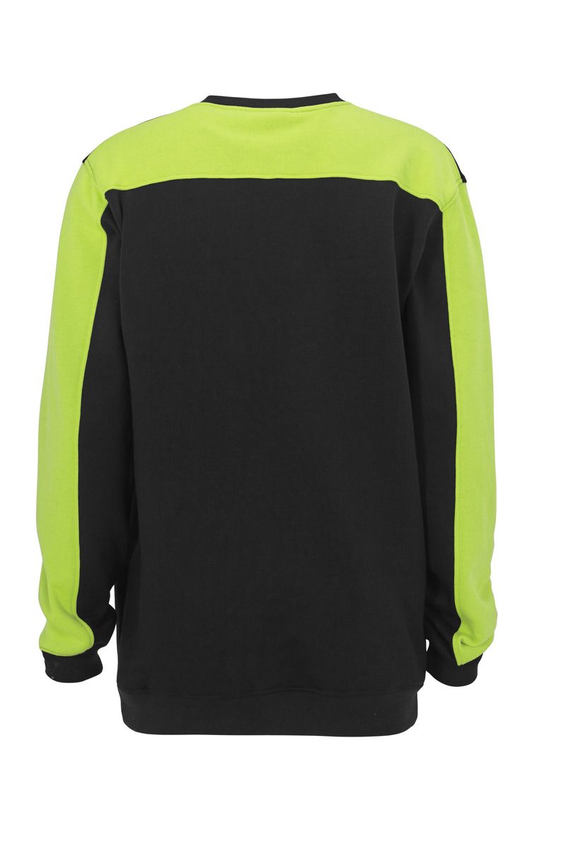 Sweatshirt mit kontrastfarbener Rückseite an Schulter und Ärmeln.