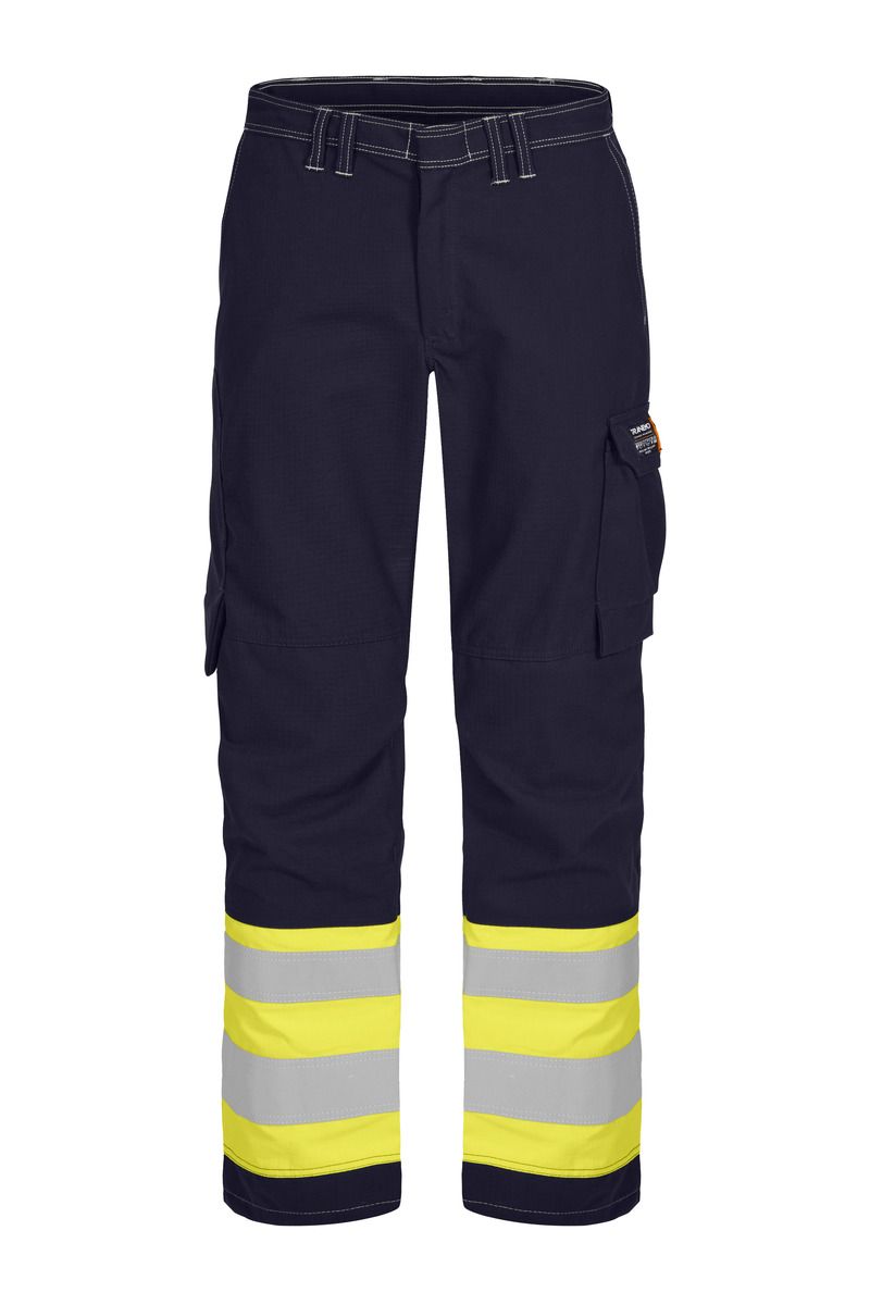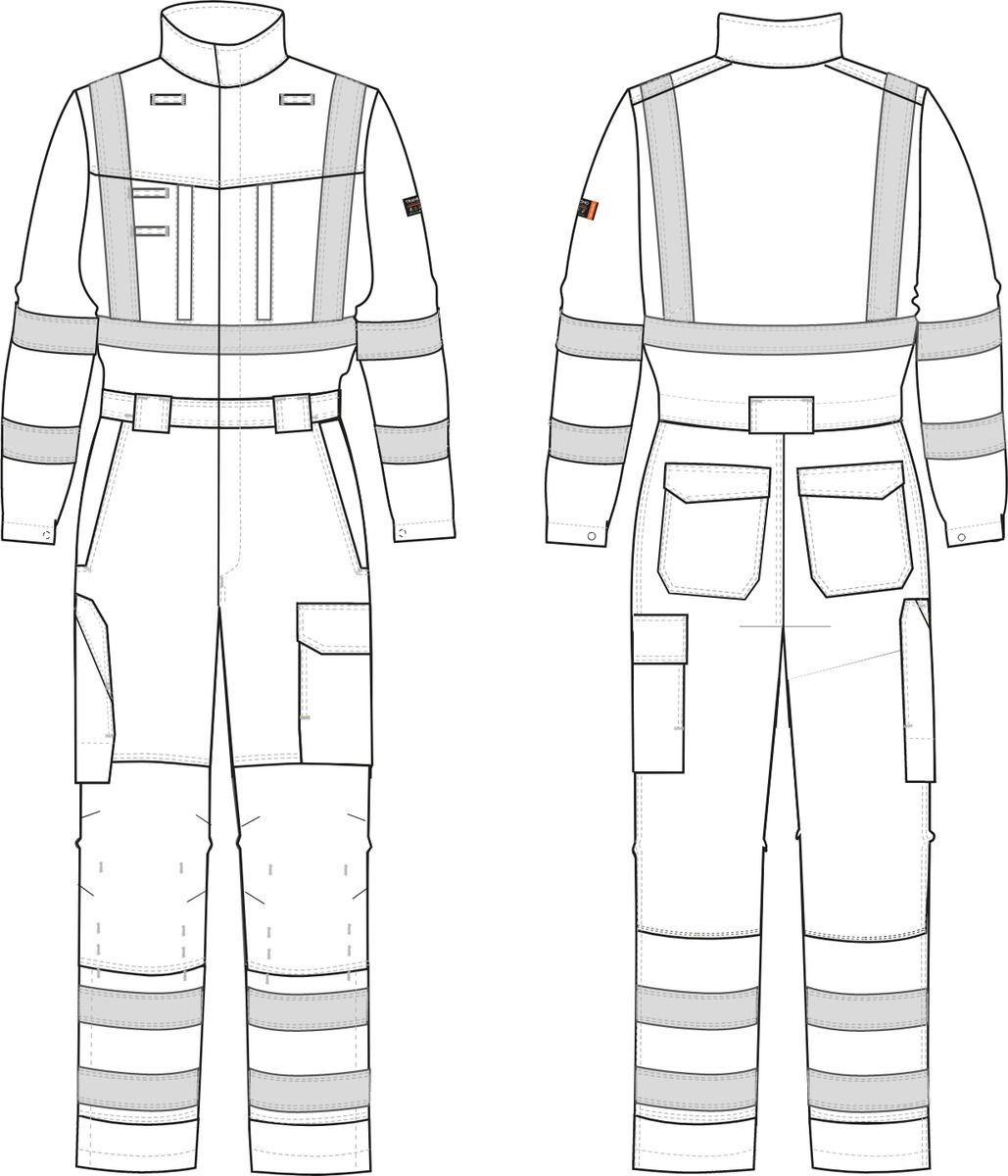 Verdeckter 2-Wege-Reißverschluss und Druckknopfverschluss. Zwei Schlaufen für Kommunikationsausrüstung. Zwei Schlaufen zur Anbringung einer ID-Tasche. Vertikale Brusttaschen mit Reißverschluss. Weitenverstellbarer Taillenbereich und verstellbare Ärmelbündchen für uneingeschränkte Bewegungsfreiheit. Gürtelschlaufen. Vorgeformter Kniebereich mit verstellbaren Kniepolstertaschen innen. Gesäßtaschen, Cargotasche und Zollstocktasche mit Patte. Seitlicher Reißverschluss an den Beinen vom Knie bis zum Knöchel. Kontrastfarbene Nähte.