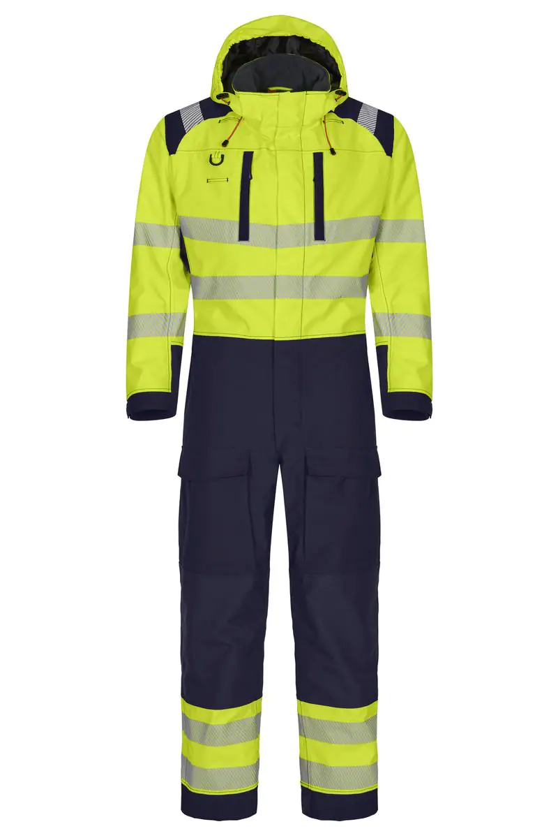 Stretch-Zone im Schritt. Cargotaschen mit Stretch und Patte, verdeckter Schlüsselringhalter, Handytasche. Zollstocktasche, Werkzeugtasche mit Werkzeugschlaufen. Vorgeformte, mit HTPA-Dobby verstärkte Kniepolstertaschen und Stretch-Zonen. Gesäßbereich mit Stretch-Anteil. Gesäßtaschen mit Patten. Fußweitenverstellung mit Druckknöpfen. *Kleidungsstücke in Farbe 93 + EN ISO 20471 Klasse 2 sind erfüllen den Standard RIS-3279-TOM.